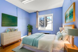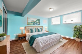 Une chambre avec plancher flottant, l'autre avec revêtement